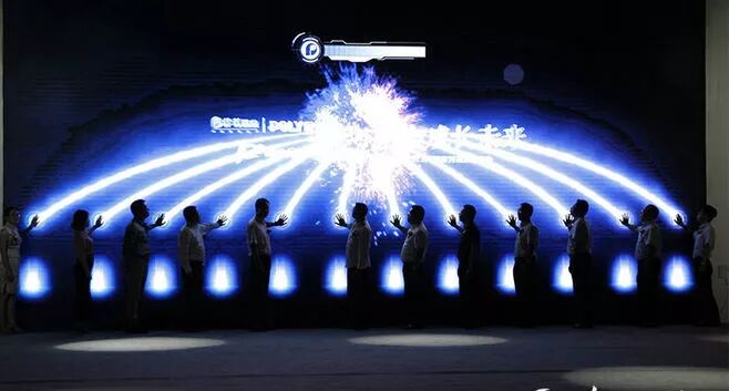 能量汇聚启动台里面加入的是激光技术的LED灯,当启动仪式开始前,启动台以安静的状态摆放在舞台上,当领导手一放上去为启动台注入能量,这时所有的能量都汇聚在中心位置,显现出来活动主题logo。